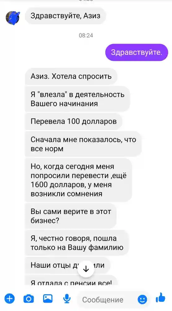 «Я сразу же стал публично говорить, что это обман и верить мошенникам нельзя. Четыре дня подряд я делал посты об этом в Facebook и Instagram, стараясь сделать все возможное, чтобы как можно меньше людей пострадали. Объяснял, что мои фото взяты из интернета, а видео — это измененный с помощью ИИ фрагмент моего интервью на подкасте Commutator, во время которого речь шла вообще о другом. Я понимал, что наверняка кто-то поверит мошенникам и отдаст свои деньги, но надеялся, что этого все-таки не произойдет. К сожалению, сегодня у меня была такая переписка — скрины ниже. Неизвестные сукины дети ограбили пенсионерку. И я понимаю, что кто-то наверняка пострадал и еще, поверив обману. Пожалуйста, не верьте мошенникам никогда», — написал он.