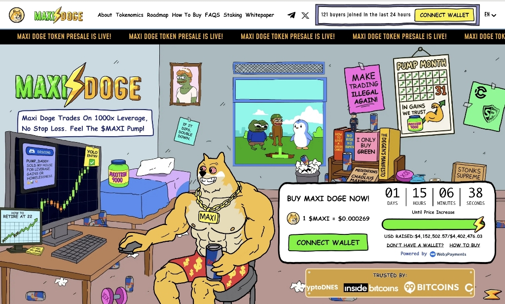 Maxi Doge как раз из таких. На момент подготовки статьи стоимость токена держится на уровне $0,000269, а общий сбор на пресейле уже превысил $4 млн., что показывает уверенный спрос со стороны инвесторов.