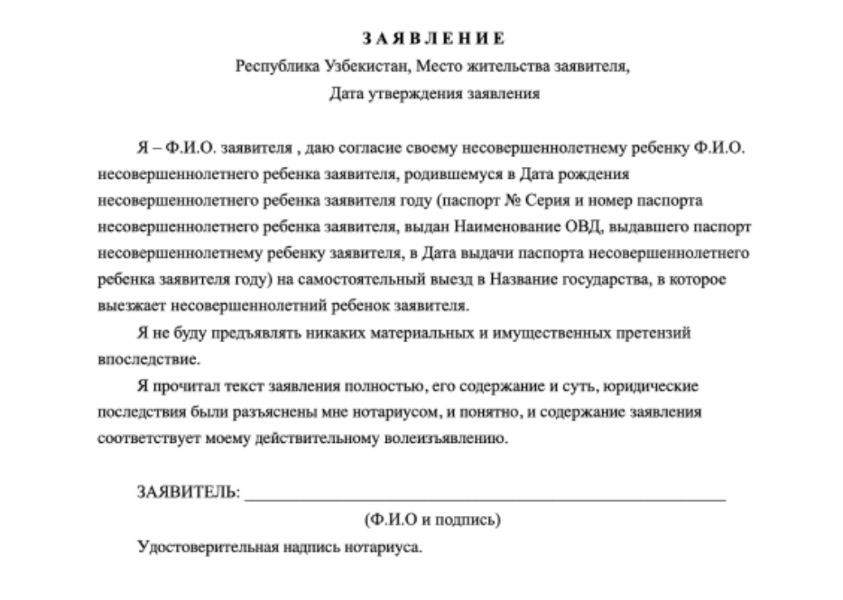 - нотариальное согласие второго родителя (если один отсутствует);