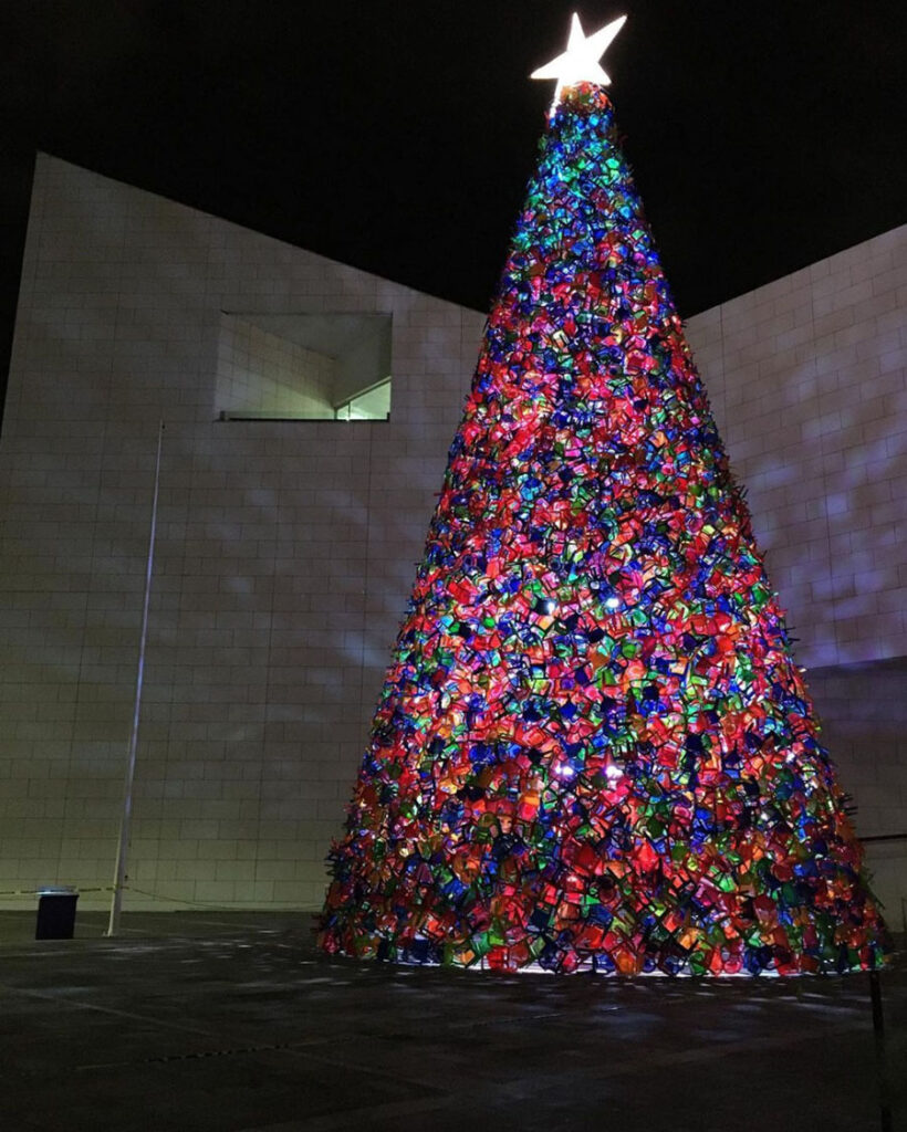 Название этого рождественского арт-объекта объедиило слово Baum, которое по-немецки означает дерево, с Bauhaus — известнейшей школой архитектуры и дизайна ХХ века, которая в 2019-м отпраздновала свое столетие.