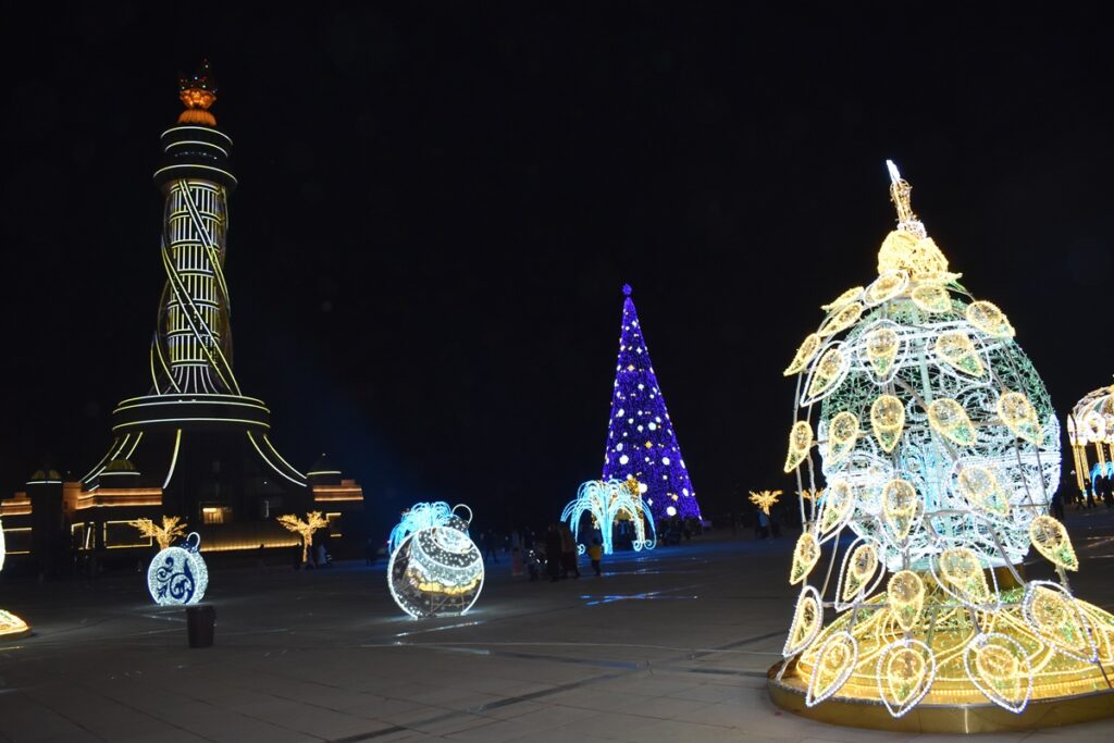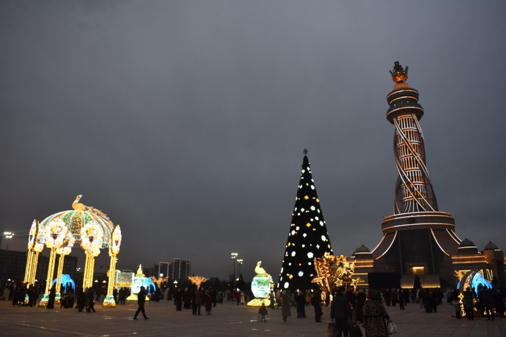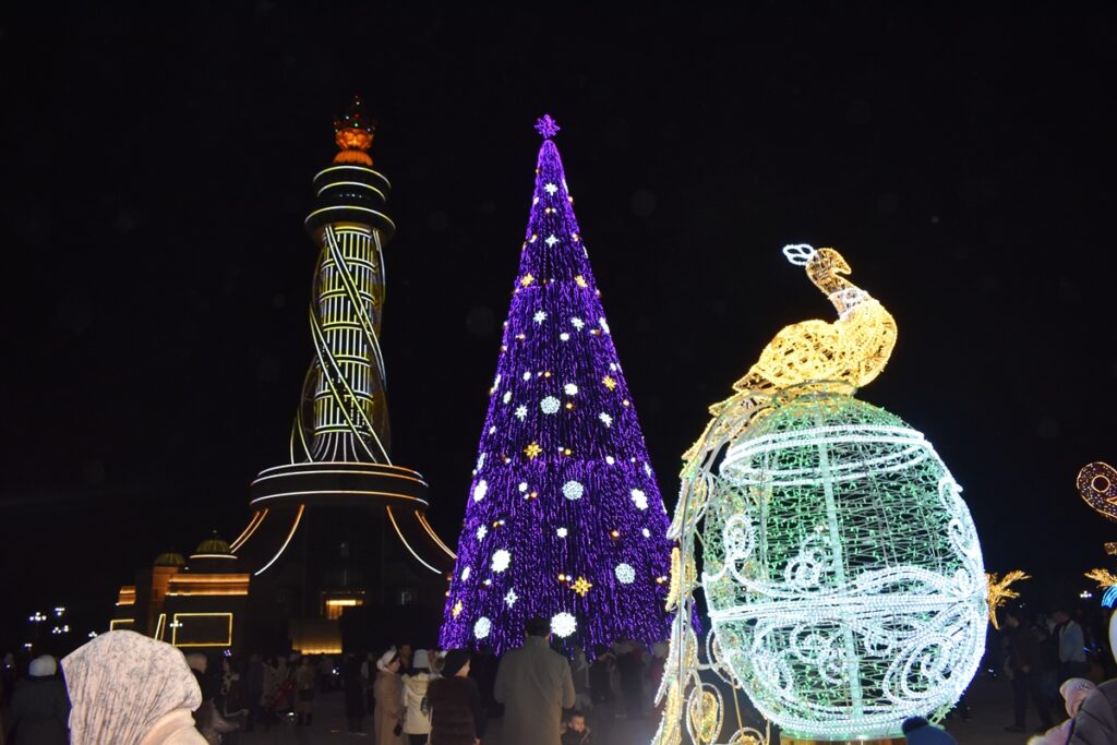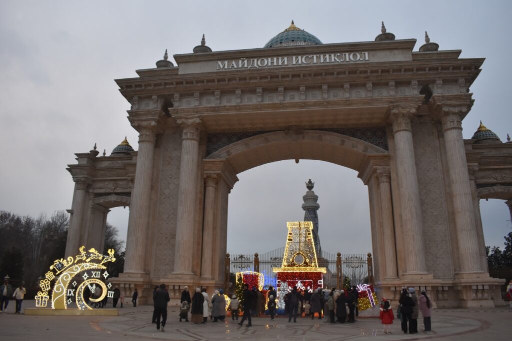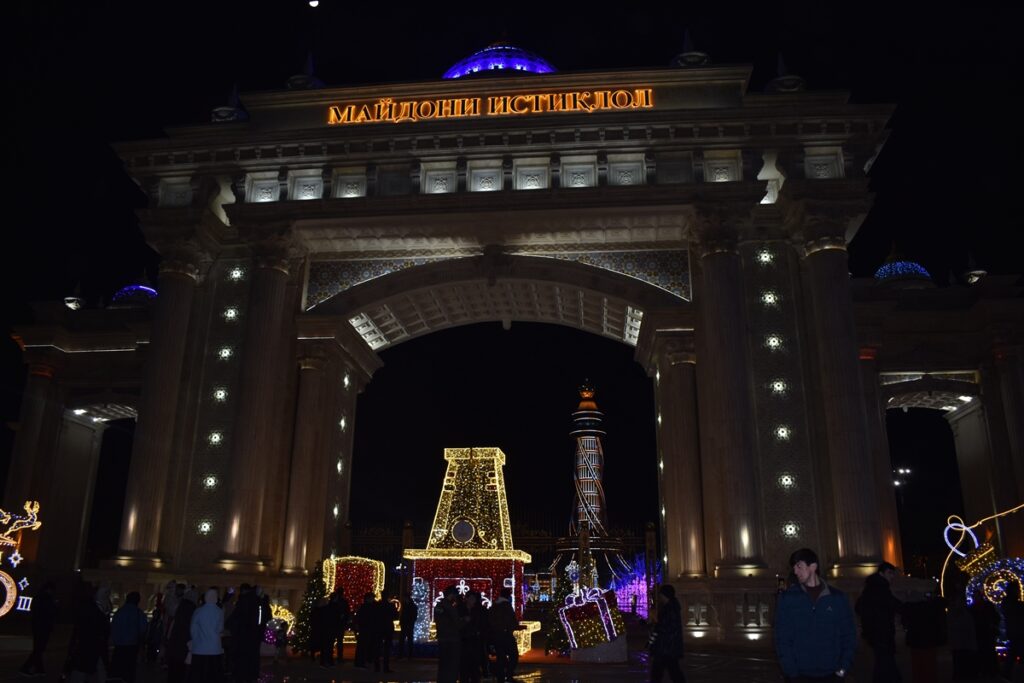 Главная площадь Душанбе — Истиклол — в последние дни года преобразилась и выглядит особенно нарядно.