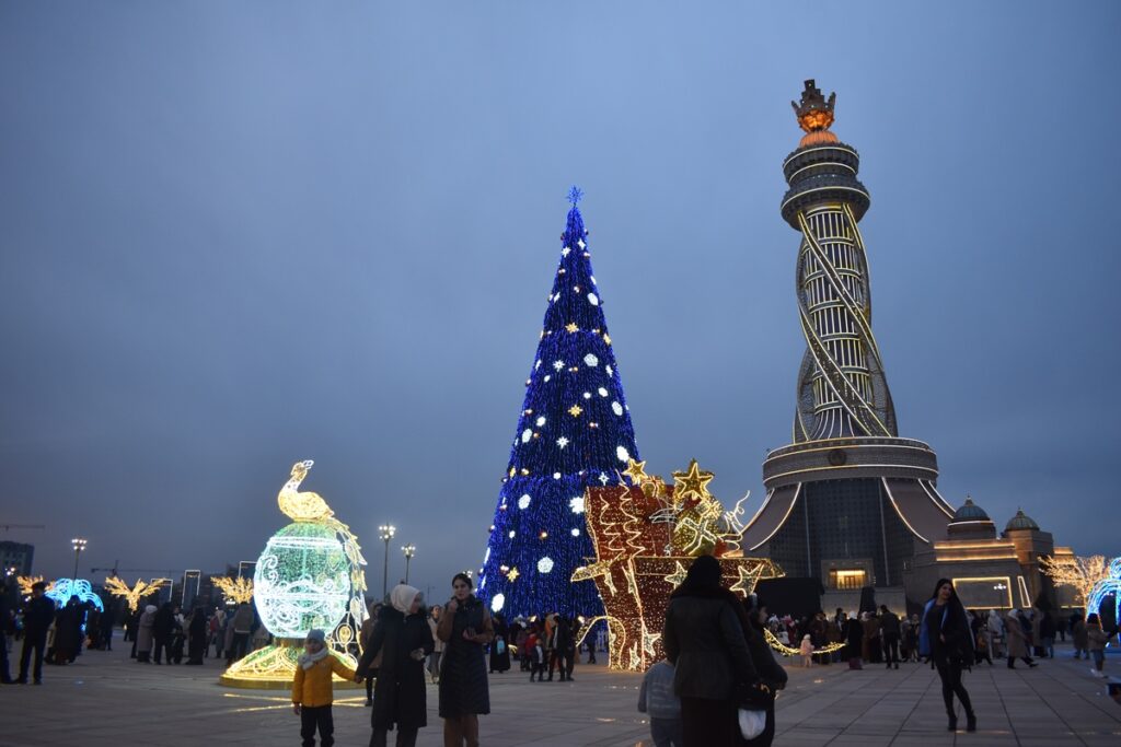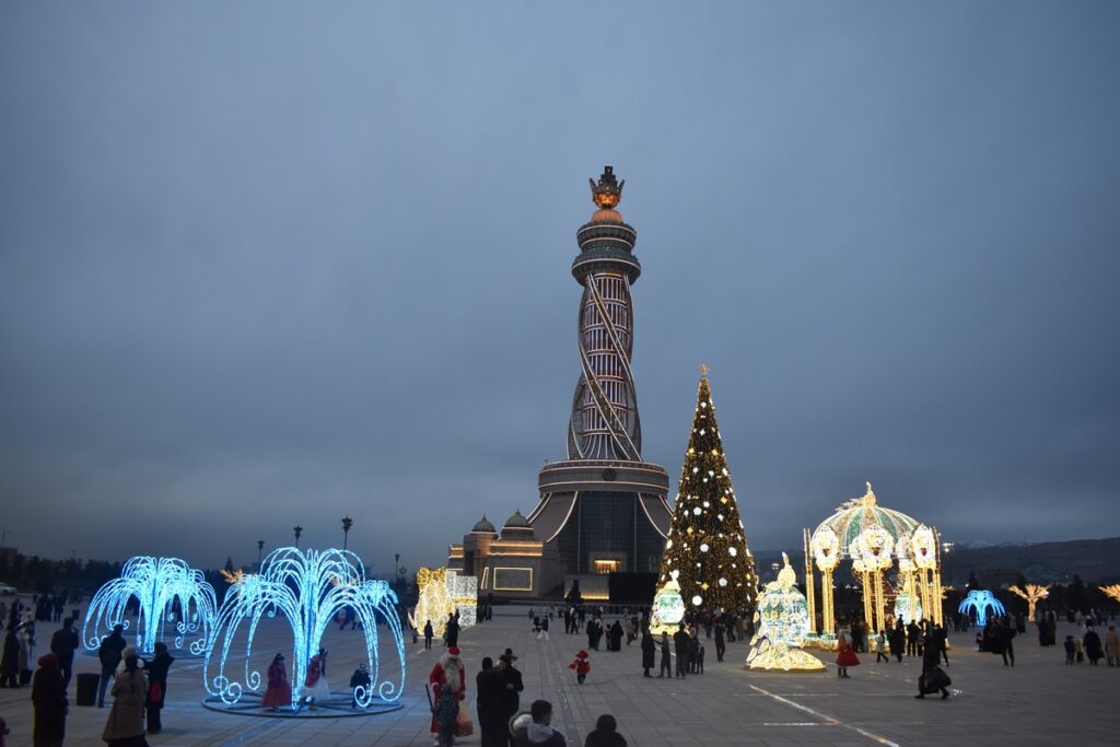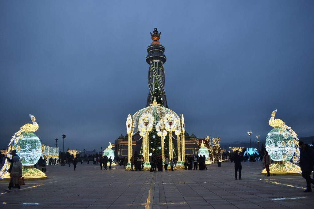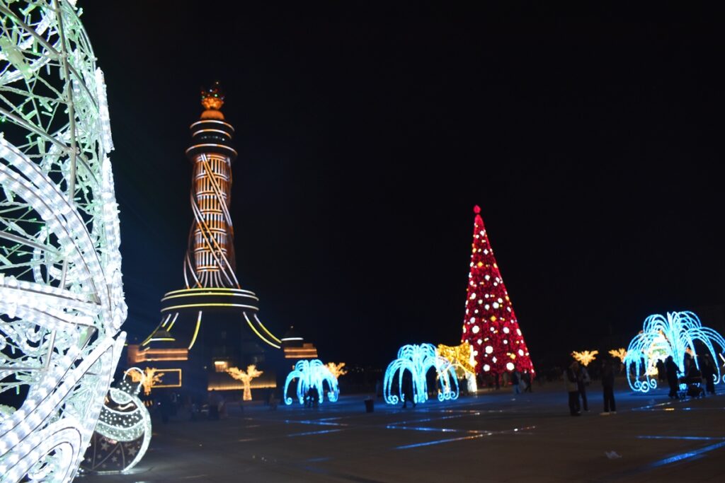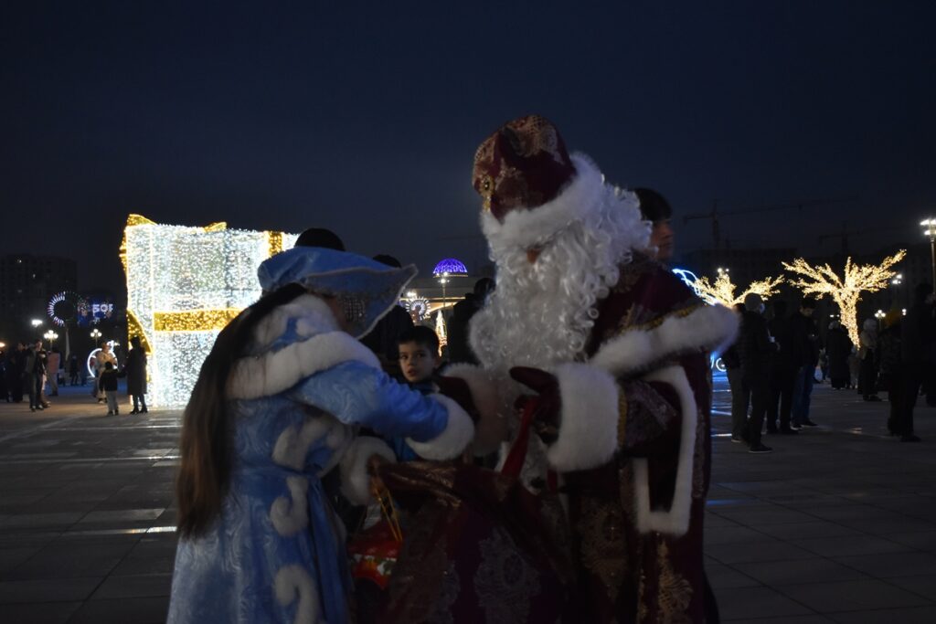 Главная площадь Душанбе — Истиклол — в последние дни года преобразилась и выглядит особенно нарядно.