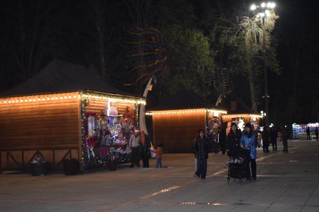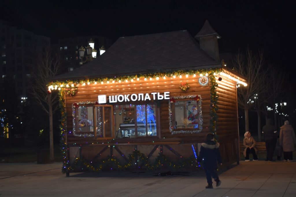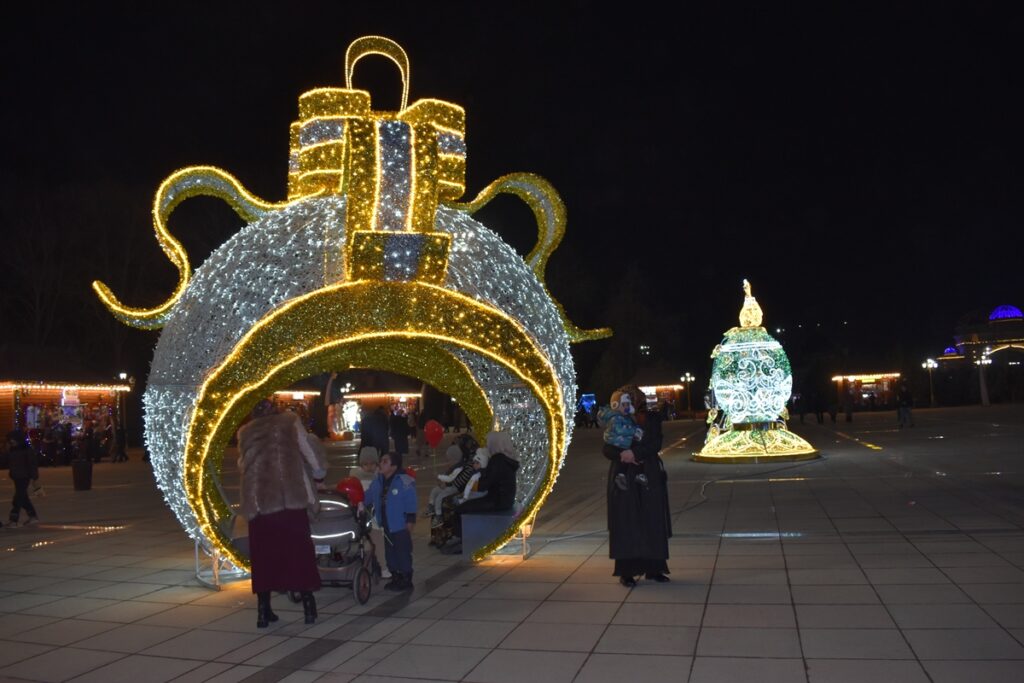 Яркая иллюминация, праздничные декорации и тематические конструкции создают атмосферу зимней сказки, несмотря на мягкую столичную погоду.