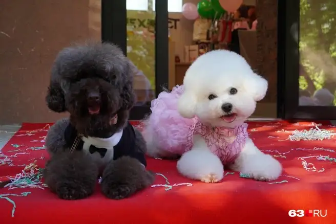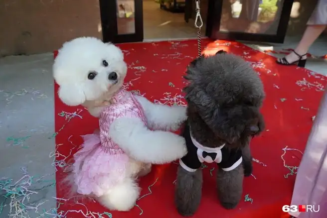 Уникальная свадебная церемония объединила бишон-фризе по кличке Аврора, которая принесла в качестве приданого пару пометов щенков, и пуделя Рыжика, отца двух дочерей от предыдущих отношений.