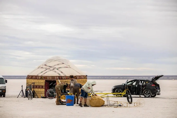 В середине сентября на солончаке Барсакельмес в Каракалпакстане состоялась необычная выставка Yonar — арт-проект под открытым небом, без публики, но с мощным художественным посылом. Пять инсталляций были установлены прямо в песках, как часть инициативы, задуманной как арт-поселение для художников из разных стран.