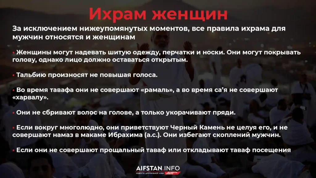 Женщины, выходя из ихрама, не сбривают волосы, а лишь подрезают кончики примерно на 1–2 см.