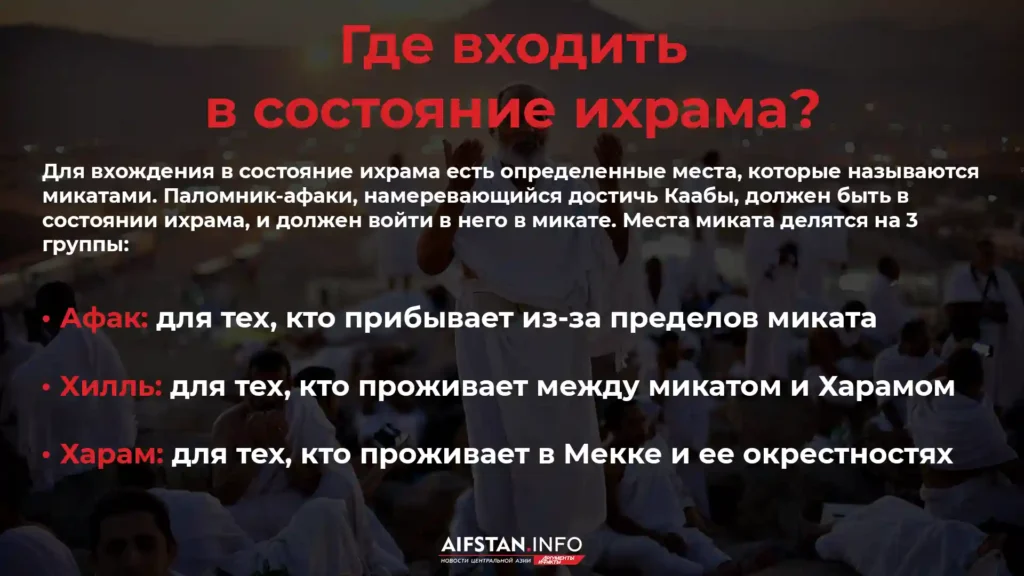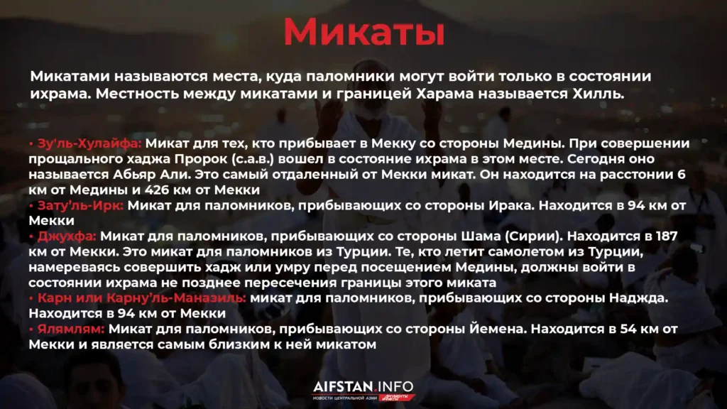 Для жителей Мекки микатом для хаджа является Харам, а для умры — Хилль. Чтобы совершить умру, мекканцы выходят за границы Харама и входят в состояние ихрама в местах, расположенных в Хилле, например, в мечети Аиши в Таниме.