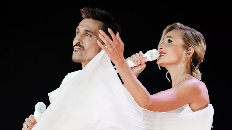 Посол международного музыкального конкурса «Интервидение» Дима Билан и певица Полина Гагарина выступают перед началом финала международного музыкального конкурса «Интервидение» в Москве.