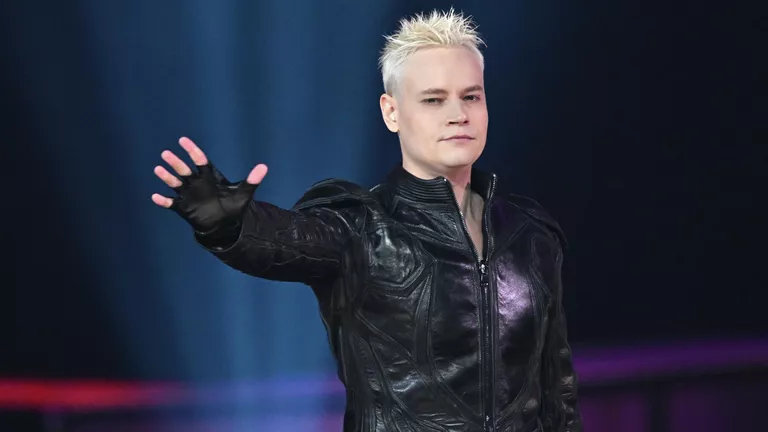 Ярослав Дронов (Россия) выступает на международном музыкальном конкурсе «Интервидение» в Москве.