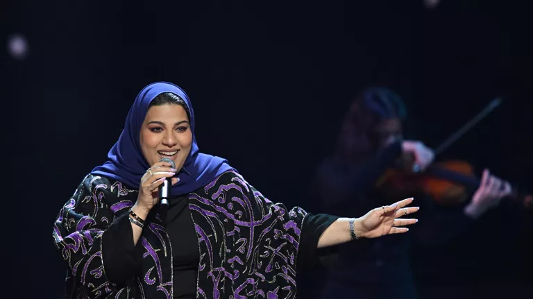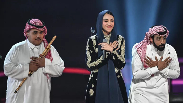 Зейна Имад (Саудовская Аравия) выступает на международном музыкальном конкурсе «Интервидение» в Москве.
