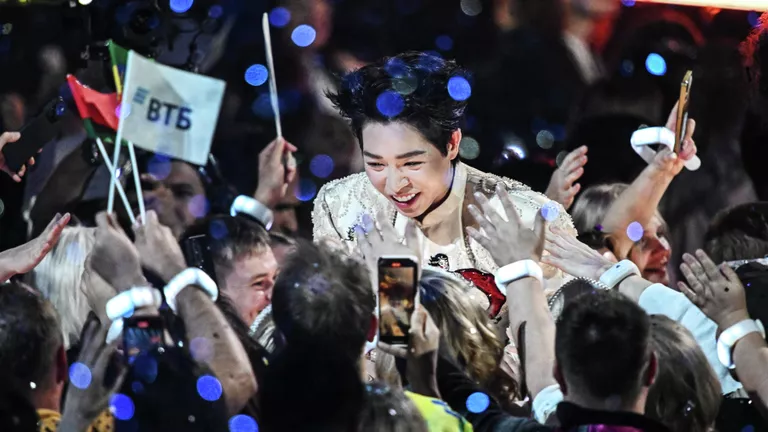 Ернар Садирбаев (Казахстан) выступает на международном музыкальном конкурсе «Интервидение» в Москве.