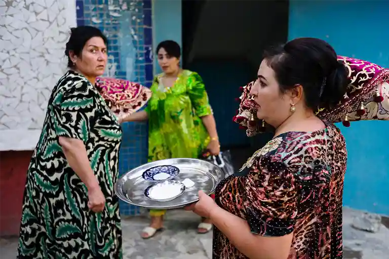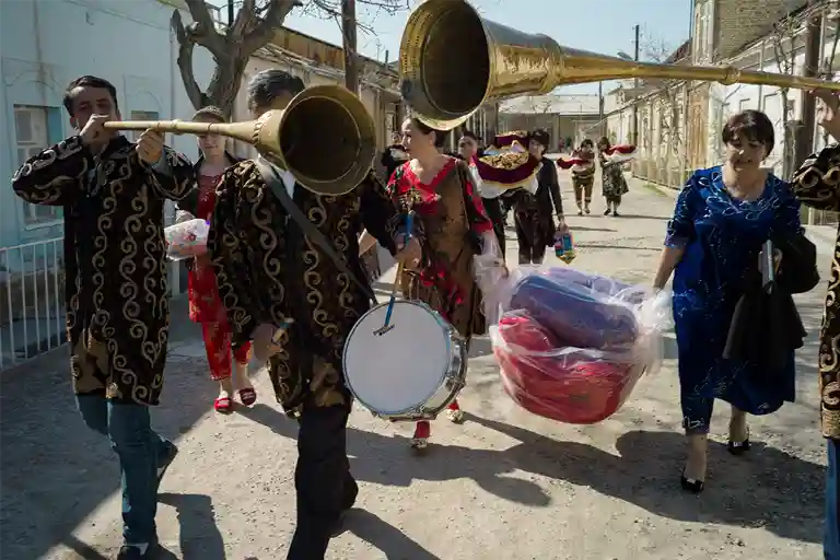 Узбекские свадьбы — одни из самых масштабных в мире. К ним готовятся заранее, приглашая сотни гостей, среди которых значительная часть — родственники и соседи. Из 300–500 человек за праздничным столом около 90 процентов оказываются близкими семьями жениха и невесты.