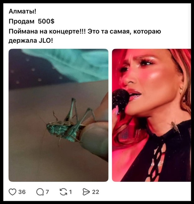 Казахстанец по имени Айсултан поймал того самого кузнечика и рассказал об этом в соцсетях. Осознав коммерческий потенциал уникального насекомого, он дал ему символичное имя — Марк Энтони и в шутку предложил обменять кузнеца на квартиру в Астане. Алматинцы тут же подхватили идею, зарядив соцсети заманчивыми предложениями по обмену кузнечиков. Благо, в Алматы такого добра нынешним летом особенно завались.
