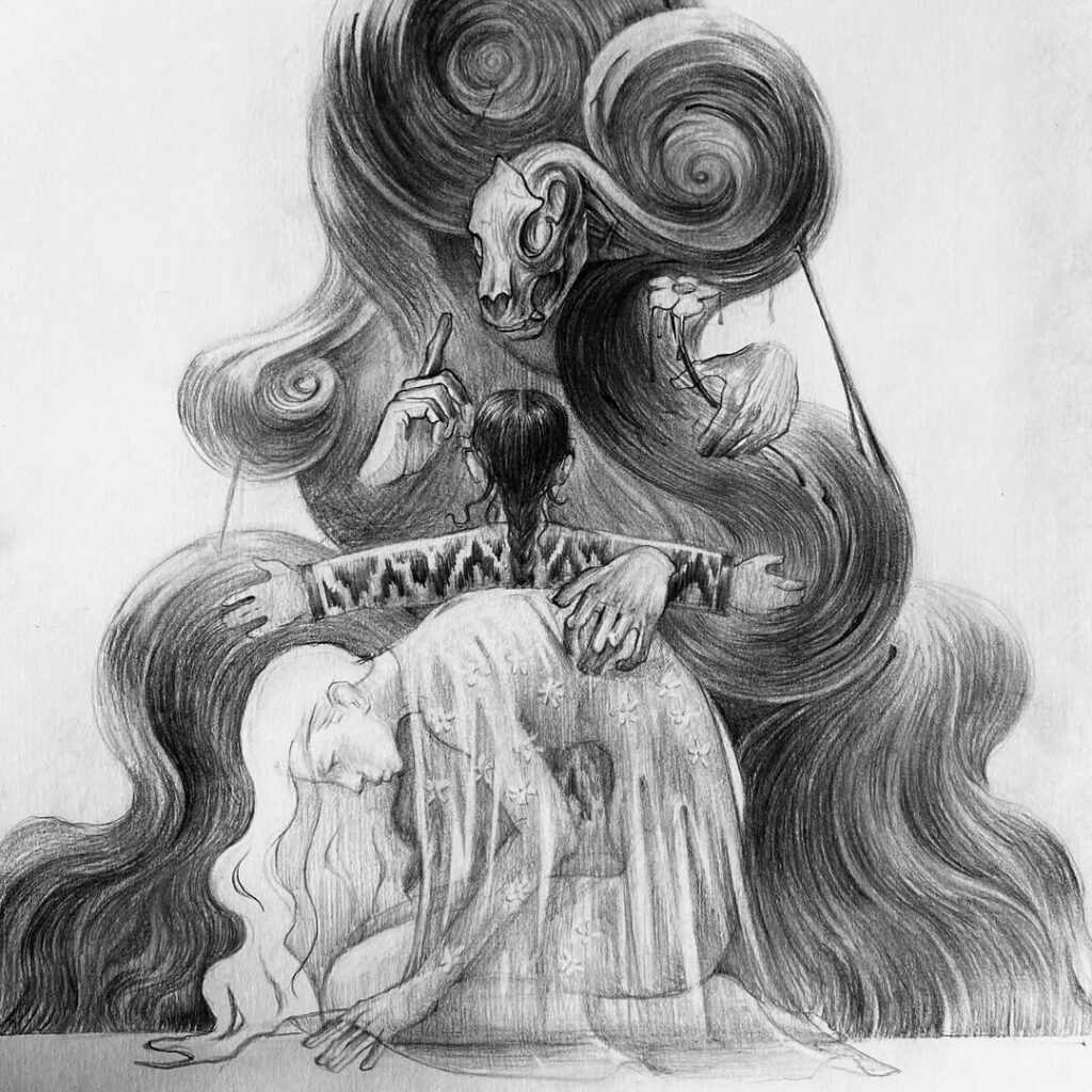 Я с восторгом слушал моменты, когда девушка, убегая от трехглавого дева (демона), кидает назад зеркало, и оно превращается в огромное озеро, точильный камень – в высокие горы, а расческа – в густой лес», – рассказывает художник.