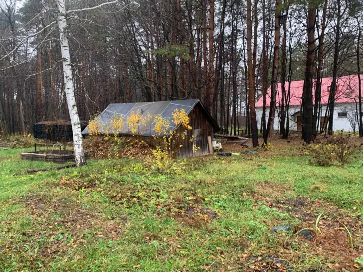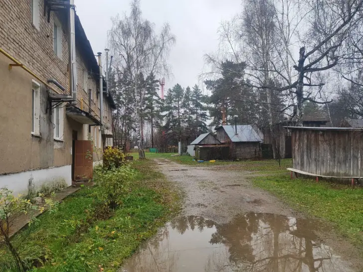 Неподалёку от Центра — двухэтажный барак и несколько сгоревших, давно заброшенных домов.