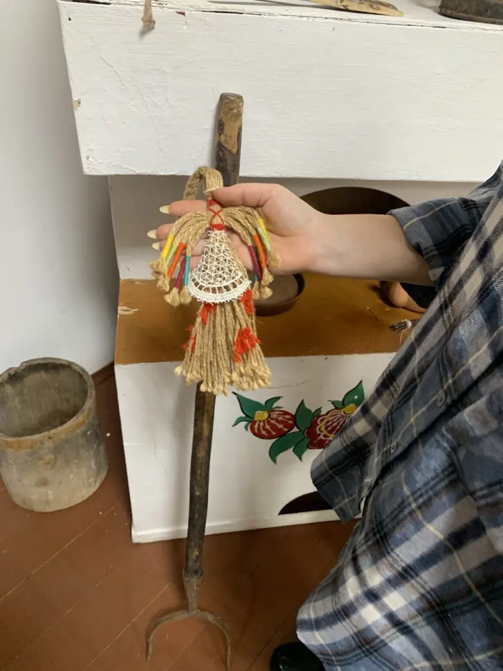 Дальше нас проводили в мастерскую к женщине, которая самостоятельно плетет из соломы различные фигурки.
