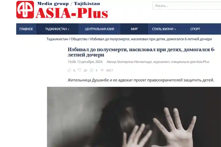 В это же время журналистка из Таджикистана — Екатерина Негматзаде брала интервью у жительницы Душанбе Замиры, которая рассказывала, как муж избивает её, насилует на глазах у детей и домогается её шестилетней дочери от первого брака: