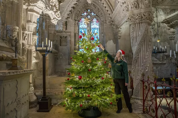 Последние приготовления к рождественской елке в часовне Богоматери в Шотландии. Часовня, основанная в 1446 году, была показана в фильме «Код да Винчи».