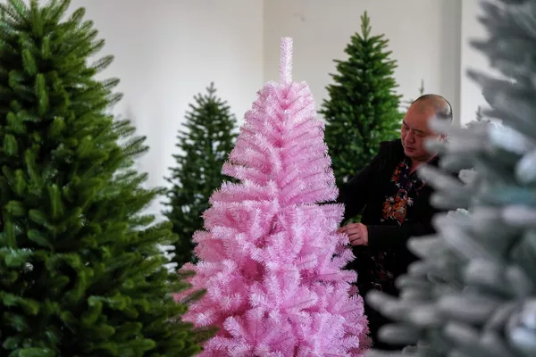 Производство рождественских елок в городе Цзиньхуа, Китай.