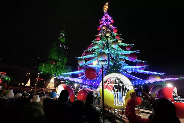 Люди посещают рождественскую ярмарку в Варшаве, Польша, суббота, 29 ноября 2025 года.