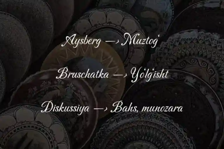Учёные-лингвисты из Академии наук Узбекистана разработали список слов, призванных заменить часто используемые иностранные термины. На данный момент он включает в себя 30 новых терминов, сообщает upl.uz.