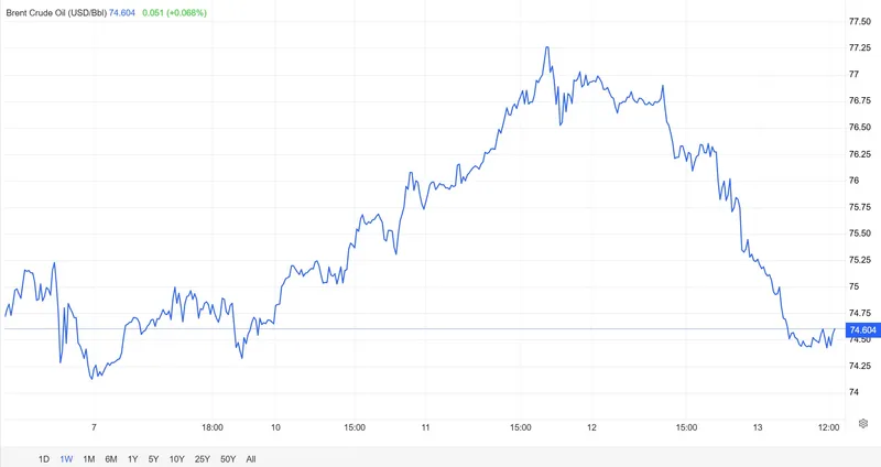После нескольких дней роста котировки нефти марки Brent опустились до отметки 74,9 доллара за баррель в среду, потеряв около 3% в цене, и продолжают снижение в четверг.
