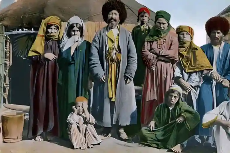 Одно из крупнейших туркменских племён. Женщины теке обладают характерной пластикой лица: тяжёлые украшения подчёркивают плавность линий скул и шеи.