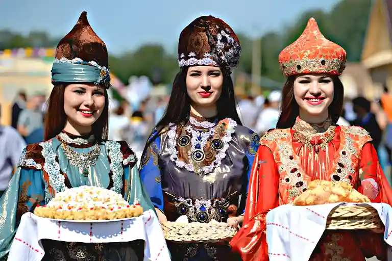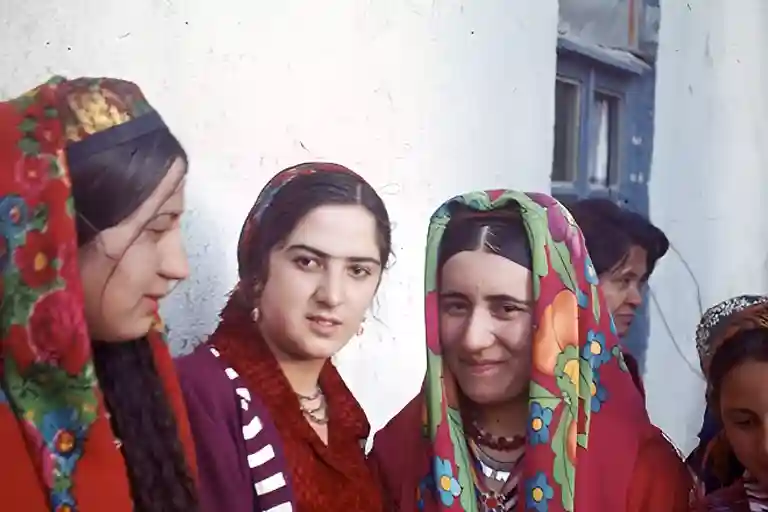 Женщины — с гордым, порой суровым выражением лица, что подчёркивает высокую степень этнокультурной самодостаточности.