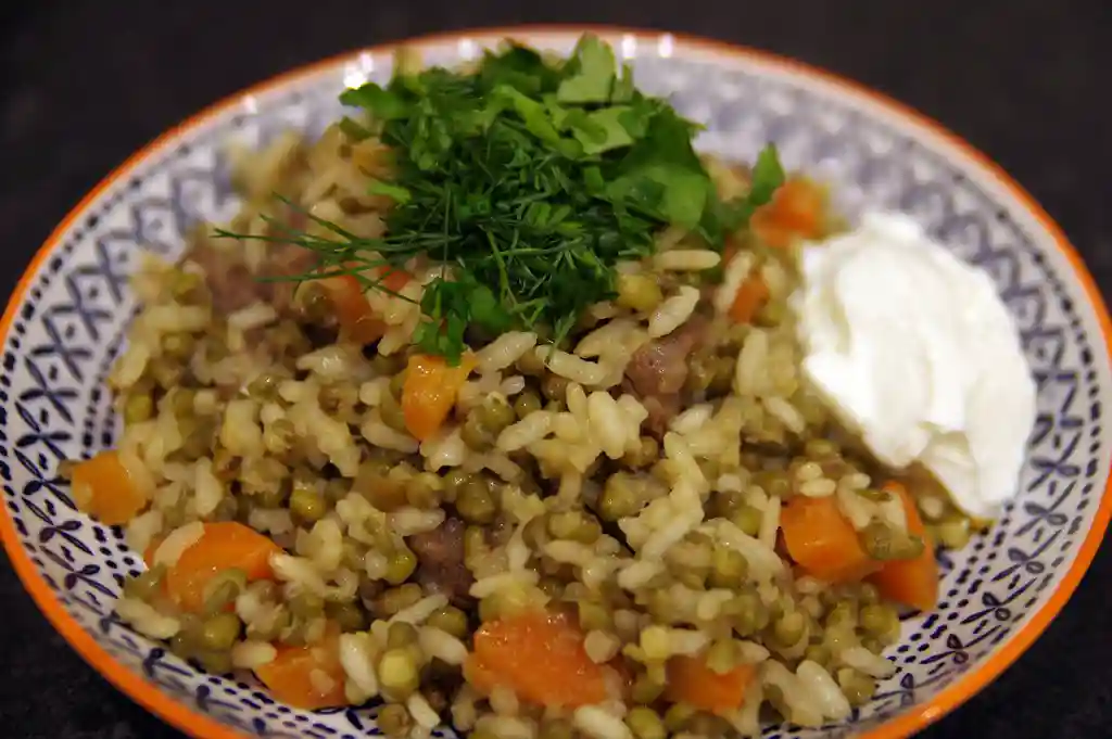 На севере Таджикистана очень любят готовить мошкичири – кашу из моша, некоторой разновидности зернобобовых и риса вперемешку. Мош – эта зерновая культура зелёного цвета, родом из Индии, где его называют мунг.
