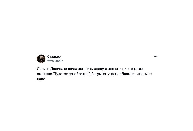 «Когда Лариса Долина пьет в баре — платит бар. Причем похмелье наутро не у Долиной, а у бармена», «Московский суд постановил, что это налоговая теперь будет выплачивать Долиной НДС», «Давший Долиной кредит банк до сих пор ей должен», «Когда едет Лариса Долина, водитель маршрутки сам покупает у нее билет», — также шутили в соцсетях о решении суда.