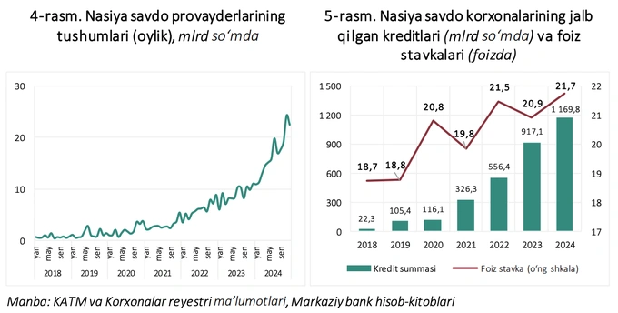 В последние годы рассрочка в Узбекистане становится одним из новых популярных явлений. С одной стороны, она способствует росту потребления домохозяйств и удовлетворяет потребность населения в товарах длительного пользования. С другой стороны, практика покупок в рассрочку может привести к формированию (скрытой) высокой долговой нагрузки среди населения и усилению рисков для финансовой стабильности.