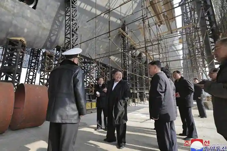 Руководитель республики Ким Чен Ын посетил судоверфь, где ознакомился с ходом работ по созданию субмарины.