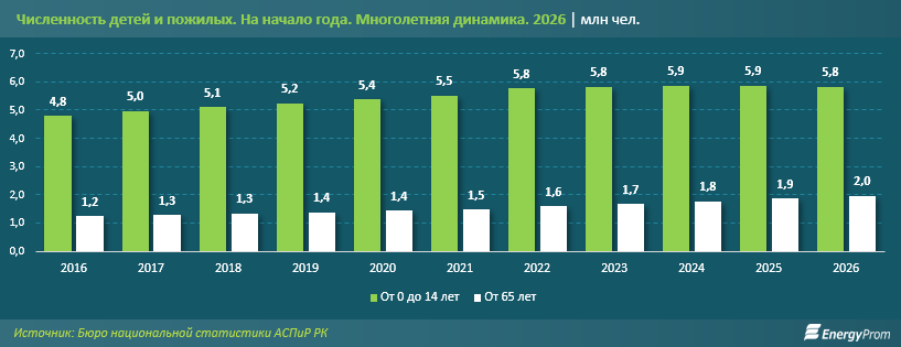 Параллельно численность пожилых граждан в возрасте 65 лет и старше растёт без перерывов: с 1,2 млн человек в начале 2016 года до 2 млн в начале 2026-го. За десятилетие прирост составил 59,6%, что значительно опережает темпы увеличения детского населения.
