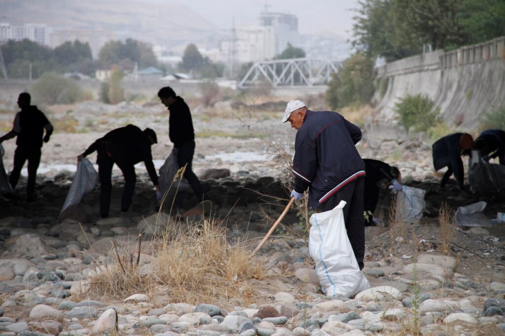 Акция по сбору мусора в реке Душанбинка. Фото Asia-Plus