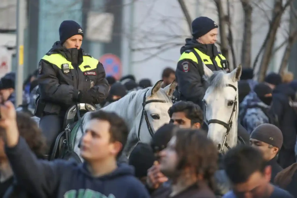 На часах — начало седьмого, у вестибюля «Третьяковской», что в Климентовском переулке, тишина и спокойствие (правда, заодно металлические заборы и росгвардейцы). На многочисленных крестах замоскворецких церквей — первые искорки солнца. Смотришь в сторону Пятницкой (а за ней Новокузнецкая с трамваями, а нам туда и надо) — и только тут упираешься взглядом в толпу из одних мужчин, идущих в едином направлении.