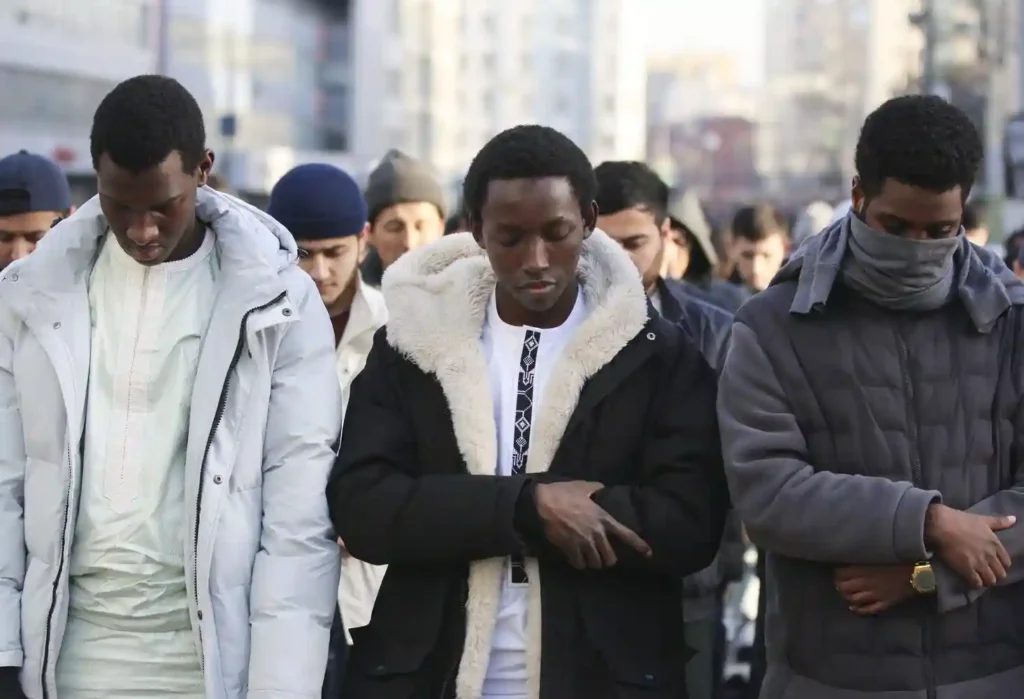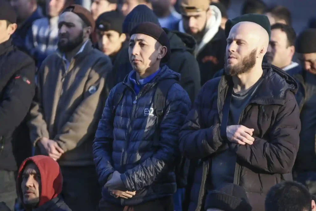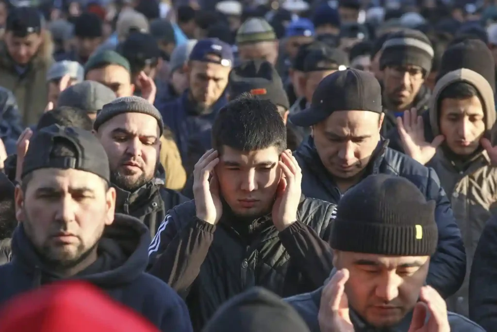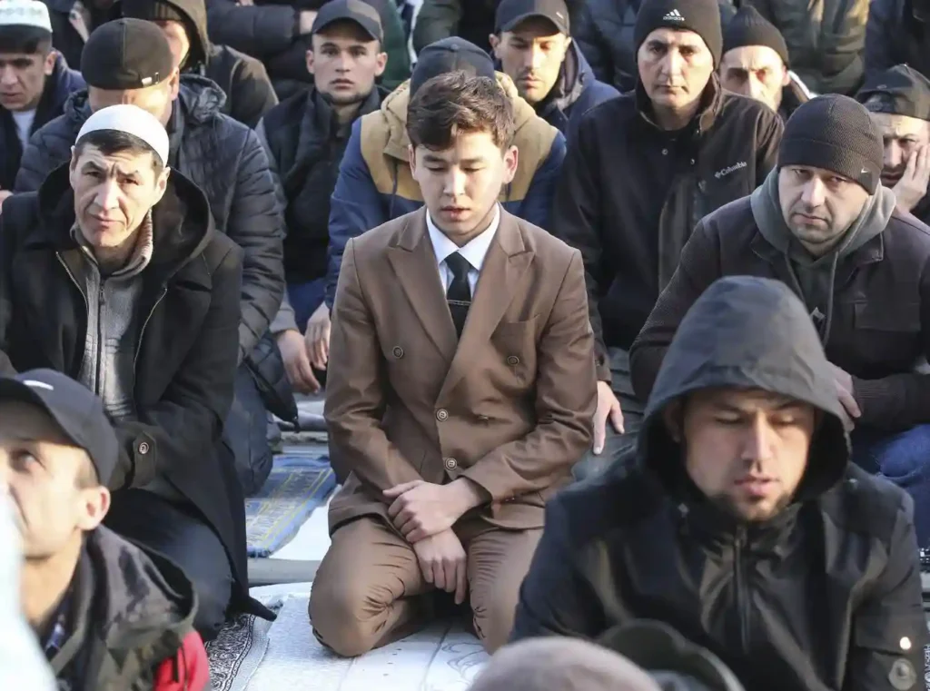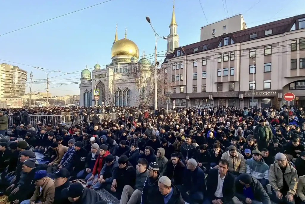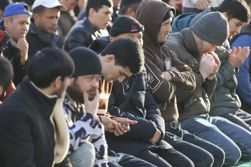 Еще несколько лет назад — перед самым ковидом, пожалуй — мусульманские праздники были самой «раннеутренней» активностью в Москве. Вереницы специфически одетых (в темную, порой рабочую одежду и часто в шапочках) мужчин можно было наблюдать во всех районах с первыми рассветными сумерками: мужчины шли вдоль улиц и проспектов к московским мечетям, ехали на такси и разномастных, но чаще потрепанных автомобилях.