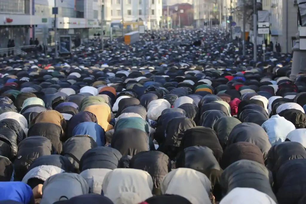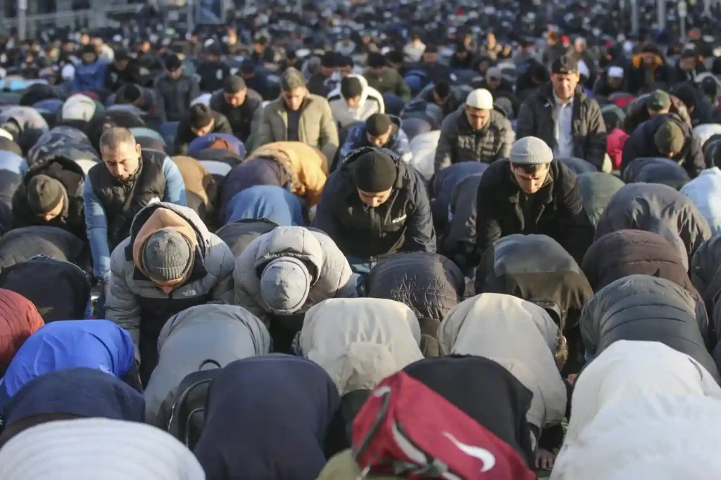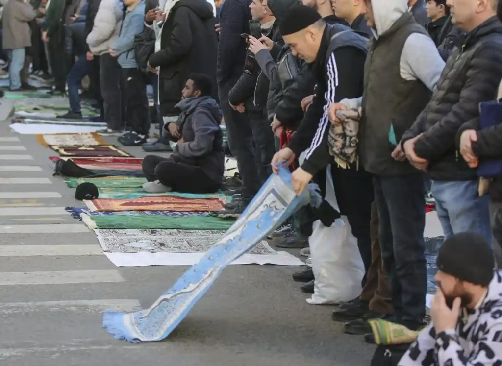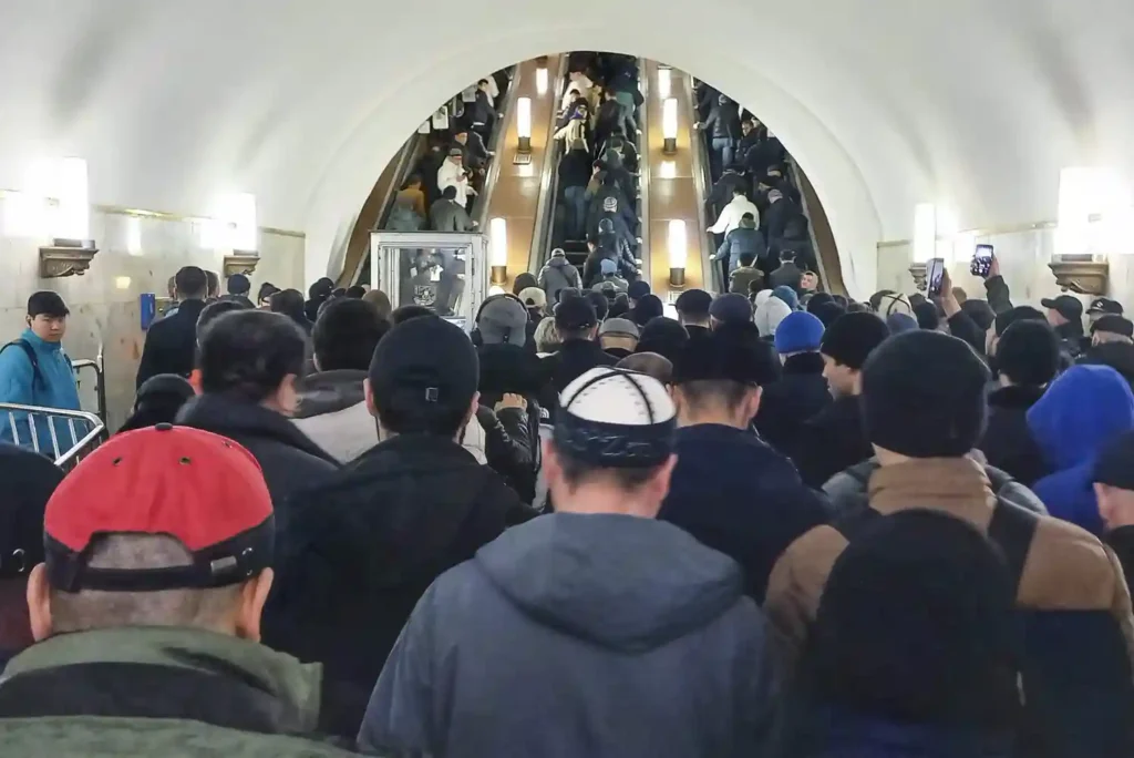 Сейчас на дворе середина 2020-х, и кое-что изменилось: основная «движуха» заметна на улицах только после 6 часов утра. И, соответственно, почти весь поток идет на метро. А все почему? Потому что парковаться в районе мечетей негде — вообще и совсем. Пешком же идти два-три часа привычно для деревенских жителей, но уже не так комфортно для городских. Вот и поменялись привычки — а ведь праздничный намаз начинается в те же 7 часов утра, что и всегда.