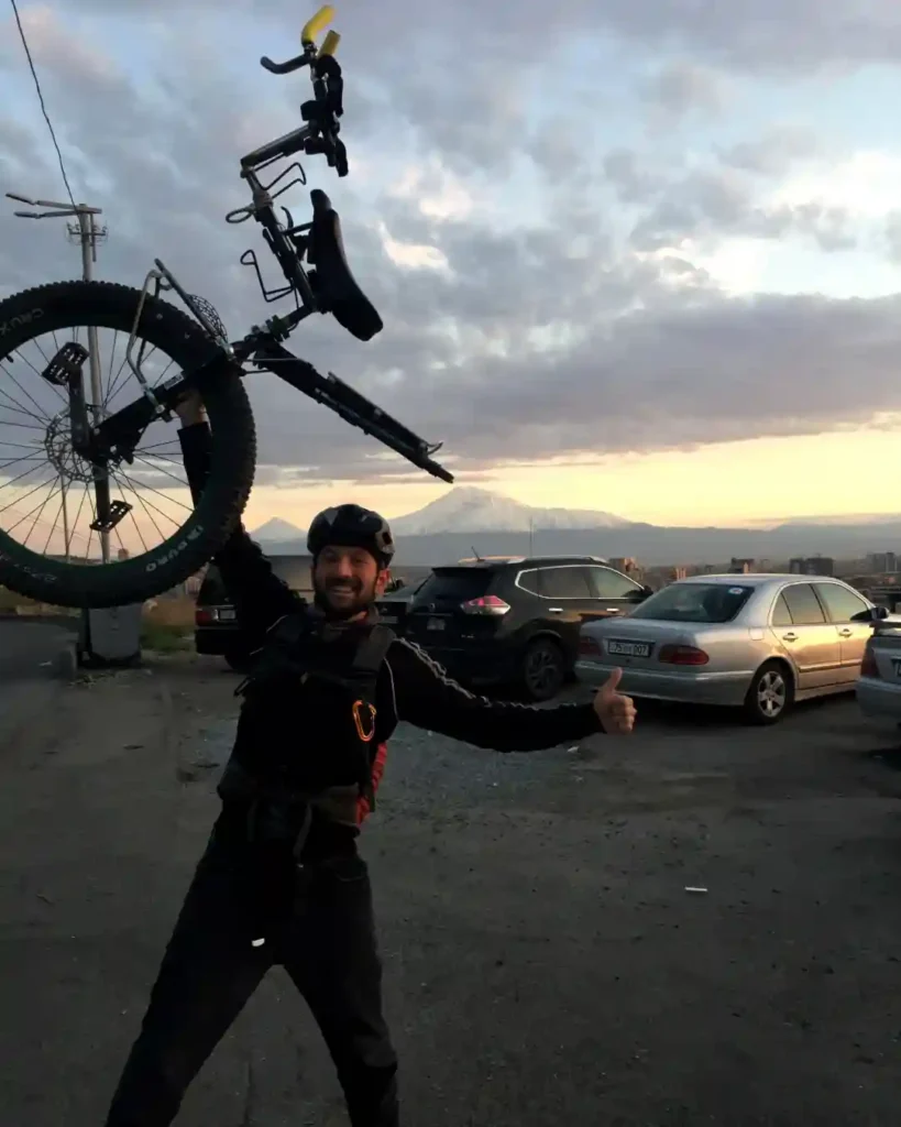 Сам Шахриёр взял колесо в 27,5 дюймов, поскольку, в случае чего, он может легче и быстрее найти покрышку, обод и спицы на необходимый радиус.