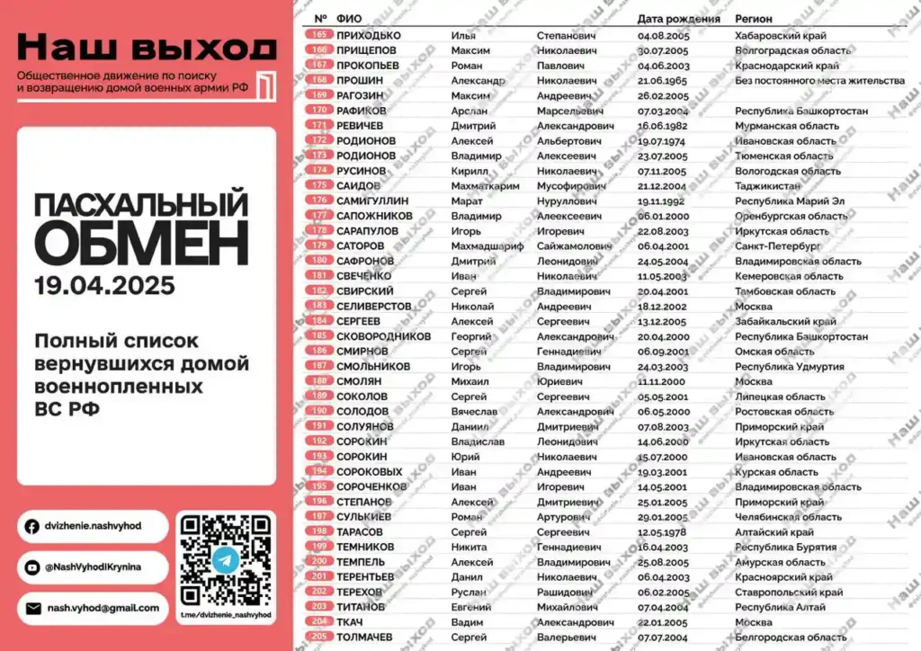 Всего в ходе обмена 19 апреля каждая сторона освободила по 246 человек. Украине переданы 31 раненый военнослужащий, а Россия получила 15 раненых.