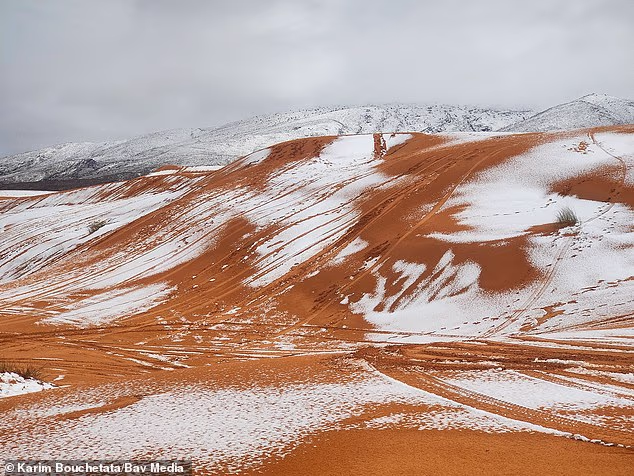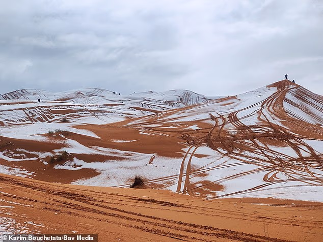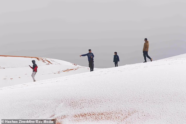 В пустыне Сахара вновь выпал снег — это седьмой подобный случай за последние 40 лет, сообщает Daily Mail.