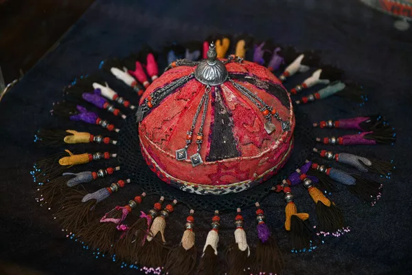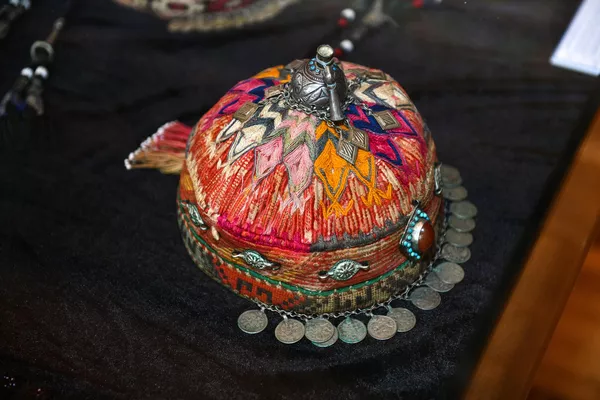 Также здесь представлены женские тюбетейки, украшенные ювелирными камнями.