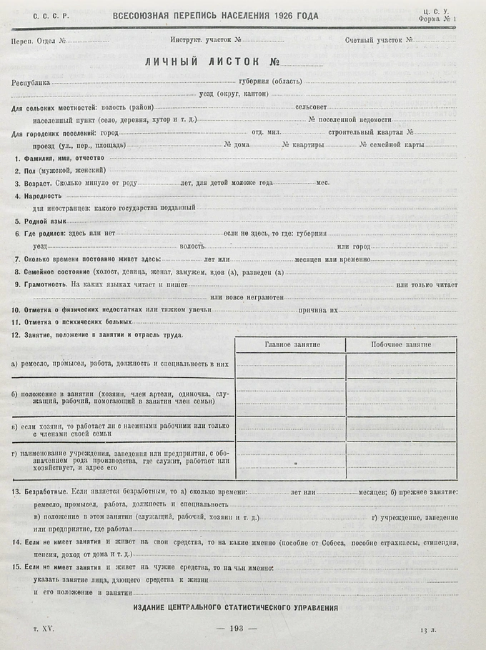 Также интересно, что перечень народностей, который использовали при проведении переписи, был составлен Комиссией по изучению племенного населения СССР при Академии наук. Отдельно был подготовлен перечень языков (и он внушительный!).