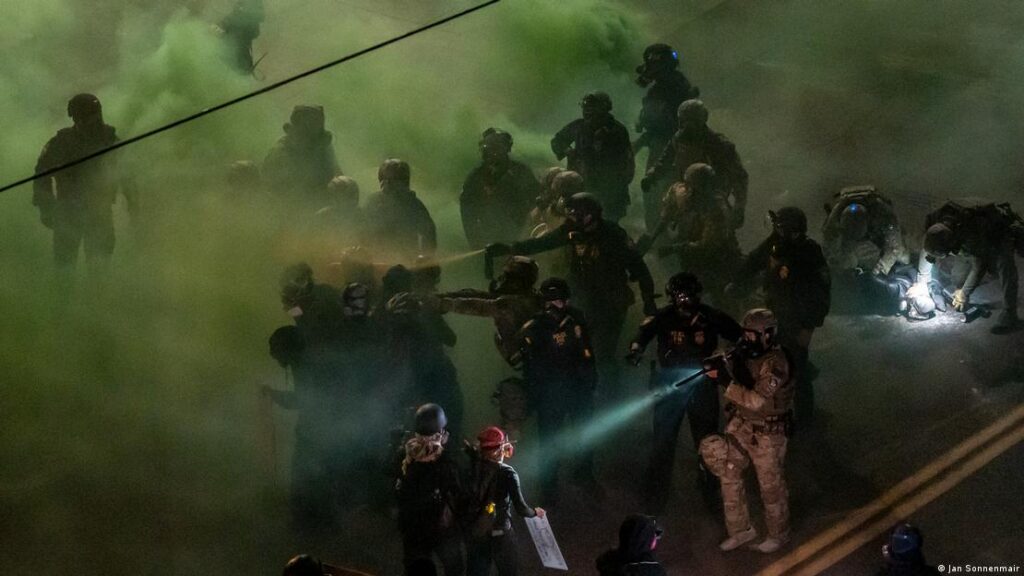 В категории «Северная и Центральная Америка» одним из победителей стал одиночный снимок Яна Сонненмэра «Протесты против ICE в Портленде», запечатлевший столкновения демонстрантов с сотрудниками федеральных служб у центра Иммиграционной и таможенной службы США.