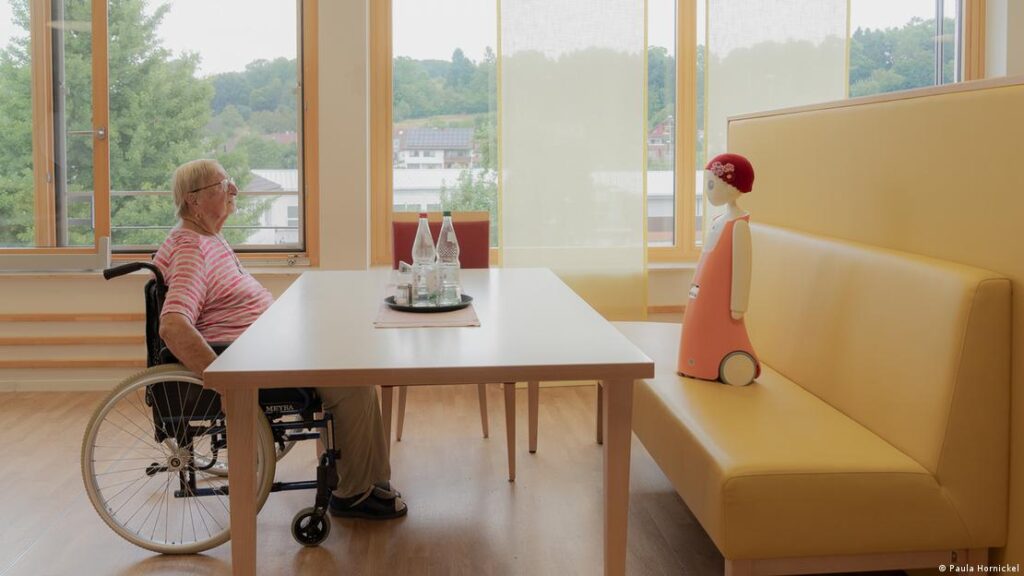 В европейском списке также отмечена работа немецкой фотографки Паулы Хорникель «Социальный робот Эмма». На снимке — пожилая женщина из дома престарелых, разговаривающая с роботом, который умеет распознавать лица и запоминать предыдущие беседы. История поднимает две острые темы для Германии — нехватку персонала по уходу и одиночество пожилых людей.